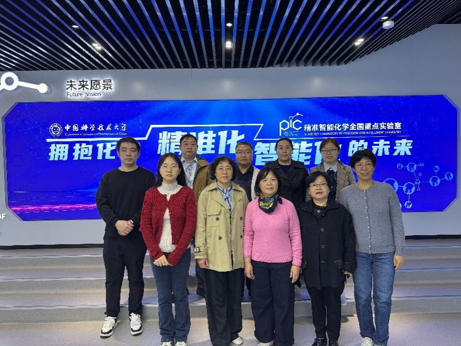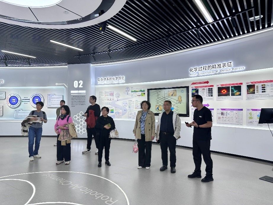 调研团队首先抵达中国科学技术大学,重点参观了该校备受瞩目的精准智能化学全国重点实验室。该实验室聚焦于探索建立精准化、智能化双驱动的化学研究新范式,以大幅提升化学研究效率;结合已有工作基础和学科发展趋势,形成了复杂体系化学理论、化学过程精准表征、数据驱动的智能化学、反应路径与材料物性的精准调控四个研究方向。实验室李小波教授详细介绍了如何利用AI算法优化复杂化学反应流程,从而加速新材料的合成、表征、筛选和发现;并展示了在精准操控化学反应方面取得的创新成果。上大教师们就AI模型构建、数据处理、跨学科合作模式等关键问题,与中科大的专家们进行了热烈而深入的探讨。此次访问为上海大学化学学科在探索“AI for Science”研究新范式、推动学科交叉融合方面提供了宝贵的思路与借鉴。
