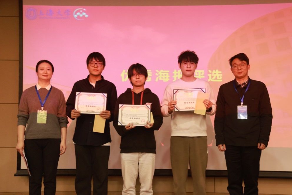 在会议墙报评选环节中,专委会秘书长、华东师范大学李文雪教授揭晓获奖名单。华东师范大学叶政君、复旦大学蔡云鹏和上海大学庞锋涛获此殊荣。李文雪教授和专委会委员同济大学许静平教授为获奖者颁奖。