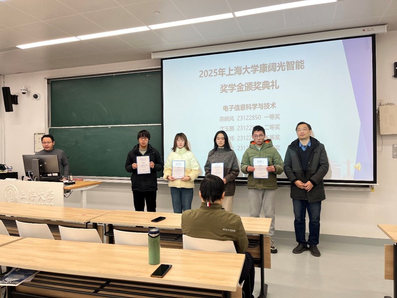 1月12日,上海大学理学院物理系2025年康阔光智能奖学金、奖教金颁奖典礼在校本部GJ204教室顺利举行。理学院副院长戴晔、尹鑫茂,物理系党总支书记颜明,物理系主任葛先辉及物理系师生代表出席本次典礼。