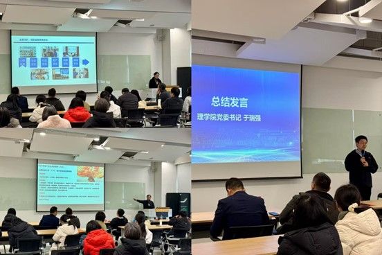 张登松部长在致辞中充分肯定理学院近年来取得的科研成绩,勉励全院科研人员在新的一年再接再厉、勇攀高峰,持续提升原始创新能力。束玲琳老师系统梳理了学校整体科研发展态势,对2026年度国家自然科学基金申报政策、流程及注意事项作了全面解读,为申报工作提供了精准指导。诸颖教授结合个人成功申报经验,从选题立意、文本撰写到修改完善,分享了申报书撰写的关键要点与心得体会,并鼓励大家坚持深耕、久久为功。袁帅副院长代表学院作2025年度科研工作报告,通过详实数据展示了学院取得的成绩,并剖析了当前科研工作存在的短板,提出了未来改进路径。针对寒假期间实验室安全与学生管理工作,姚颖冲副书记与袁帅副院长分别就留校学生管理、安全风险防范等作出具体部署,要求各科研团队压实主体责任,筑牢安全防线。