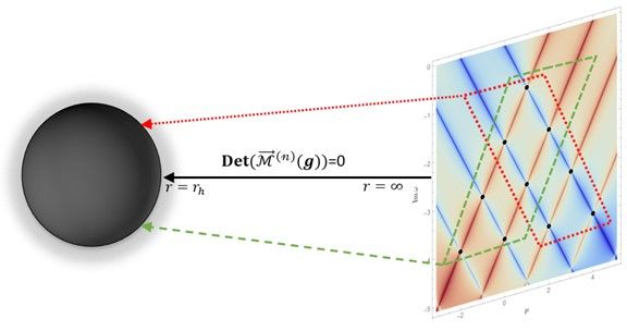 近期,上海大学理学院物理系学生陆禛康、冉成同学与吴绍锋教授在该领域取得了重要的进展。他们提出了一种利用边界关联函数的“极点跳跃”(pole-skipping)点重构黑洞时空度规及其导数的新方法,并由此揭示了极点跳跃数据蕴含的普遍冗余性。